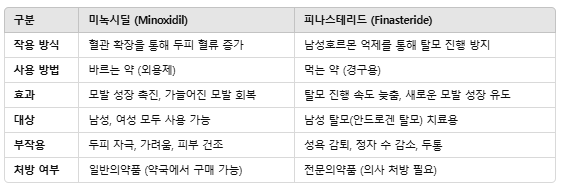 미녹시딜 vs 피나스테리드 비교 분석
